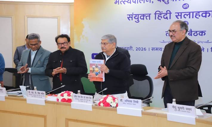 Greater Noida: विश्व हिंदी दिवस के अवसर पर केंद्रीय मत्स्यपालन, पशुपालन और डेयरी तथा पंचायती राज मंत्री राजीव रंजन सिंह उर्फ ललन सिंह की अध्यक्षता में रविवार को मत्स्यपालन, पशुपालन और डेयरी मंत्रालय की तृतीय संयुक्त हिन्दी सलाहकार समिति की बैठक नई दिल्ली में सम्पन्न हुई। इस अवसर पर समिति के अध्यक्ष, उपाध्यक्ष और सभी सदस्यों का वहाँ उपस्थित वरिष्ठ अधिकारियों ने स्वागत किया। तत्पश्चात, मंत्रालय के दोनों विभागों, मत्स्यपालन विभाग और पशुपालन एवं डेयरी विभाग की ओर से उनके यहाँ किए जा रहे राजभाषा कार्यान्वयन कार्यों के संबंध में एक प्रस्तुति की गई, जिसमें उल्लेखित प्रगति एवं प्रयासों की समिति के सदस्यों ने सराहना की। इस अवसर पर मत्स्यपालन, पशुपालन और डेयरी मंत्रालय मंत्री राजीव रंजन सिंह और मत्स्यपालन, पशुपालन और डेयरी मंत्रालय राज्य मंत्री प्रो. एस. पी. सिंह बघेल ने संयुक्त रूप से इस अवसर पर पशुपालन और डेयरी विभाग तथा मत्स्यपालन विभाग की हिंदी पत्रकाओं क्रमशः सुरभि, मत्स्य भारती और मत्स्य कीर्ति तथा विभागीय शब्दावली का विमोचन किया ।