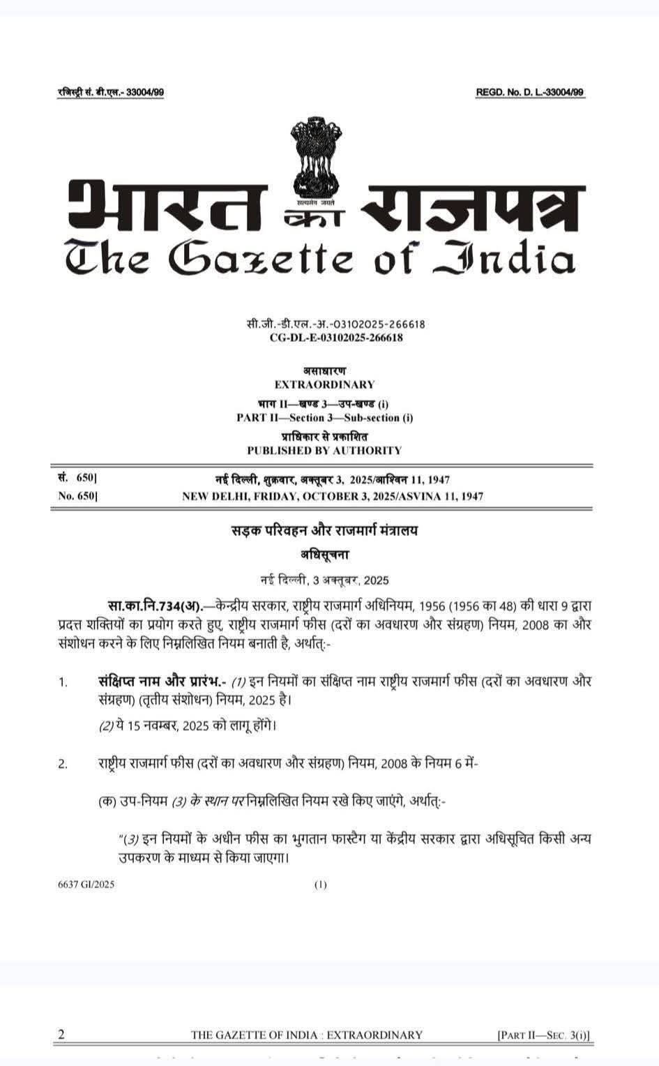 केंद्र सरकार ने कहा, “सभी वाहन चालकों से अनुरोध है कि वे इसकी एक फोटोकॉपी लेकर अपने वाहन में सुरक्षित रखें।”