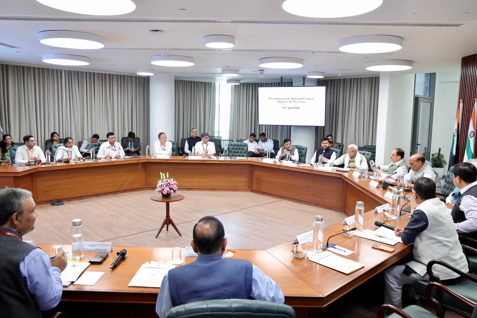 New Delhi: रक्षा मंत्री राजनाथ सिंह की अध्यक्षता में गठित आईजीओएम ने 18 अप्रैल 2026 को नई दिल्ली स्थित कर्तव्य भवन-2 में अपनी चौथी बैठक के दौरान पश्चिम एशिया की वर्तमान स्थिति की समीक्षा की तथा भारत की तैयारियों और भावी कार्य योजना पर विचार-विमर्श किया। बैठक में विदेश मंत्री डॉ. एस. जयशंकर; रसायन एवं उर्वरक मंत्री जगत प्रकाश नड्डा; पेट्रोलियम एवं प्राकृतिक गैस मंत्री हरदीप सिंह पुरी; उपभोक्ता मामले, खाद्य एवं सार्वजनिक वितरण मंत्री प्रह्लाद जोशी; नागरिक उड्डयन मंत्री किन्जारापु राममोहन नायडू; पत्तन, पोत परिवहन एवं जलमार्ग मंत्री सर्वानंद सोनोवाल; विद्युत मंत्री मनोहर लाल; श्रम एवं रोजगार तथा युवा कार्यक्रम एवं खेल मंत्री डॉ. मनसुख मांडविया; तथा विज्ञान एवं प्रौद्योगिकी मंत्रालय के राज्य मंत्री (स्वतंत्र प्रभार) डॉ. जितेंद्र सिंह उपस्थित रहे।